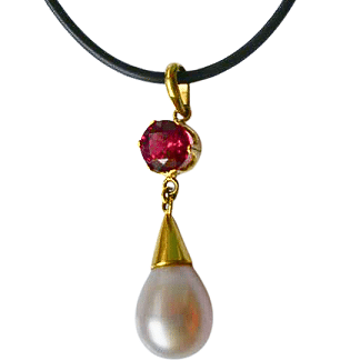 An elegant and timeless design shows off a tear-drop shaped Pearl... -