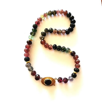 I found this beautiful strand of muli-coloured and faceted Tourmaline beads... -